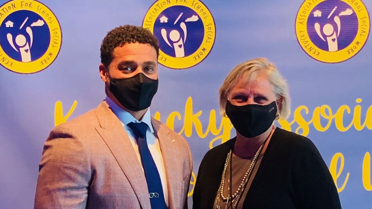 Dr. Jay Miller, Dean at the University of Kentucky College of Social Work, received the 2021 Friend of School Social Work Award from the Kentucky Association for School Social Work on Friday, September 24, 2021.