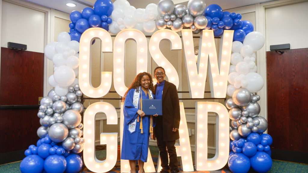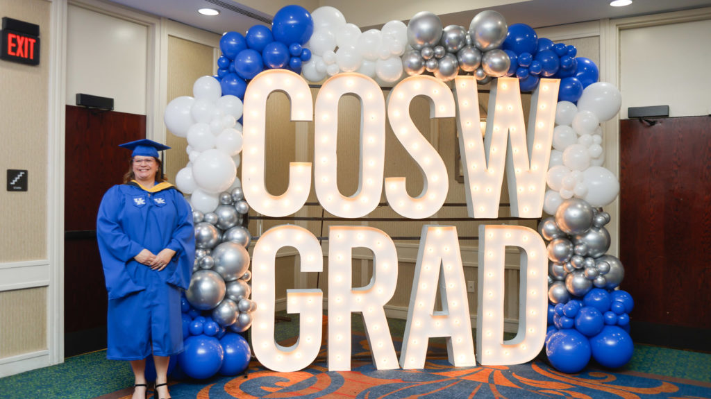 LEXINGTON, Ky. – The University of Kentucky College of Social Work (CoSW) celebrated it’s newest batch of graduates on December 19. After crossing the stage at Rupp Arena and handed their diplomas, graduates and families arrived at the Hilton Hotel to celebrate their achievements with CoSW staff and faculty. Below are pictures of the festivities.